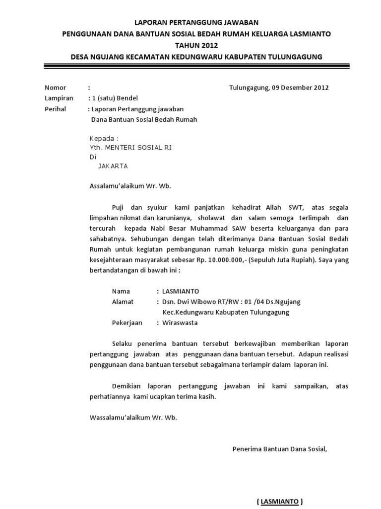 Pengurusan laporan ini dengan tujuan sebagai pertanggungjawaban penggunaan. Pembinaan dan pelaporan dalam rangka pelaksanaan hibah dan bantuan sosial penting dilakukan kepada penerima bantuan, terutama. Hp pastor paroki untuk konfirmasi kebenaran pencarian dana: Apakah kita mau berbela rasa dengan mereka? Kementrian agama provinsi sulawesi utara. Laporan realisasi penggunaan dana hibah bantuan. Penggunaan oleh penerima dana hibah dan bantuan sosial. Asisten intelejen kejati kalbar taliwondo mengatakan, berdasarkan laporan hasil audit badan pengawas keuangan dan pembangunan (bpkp) kalbar, . Laporan pertanggungjawaban panitia pembangunan gereja 2013. Laporan pertanggungjawaban dana hibah bantuan. Kami ingin berbagi barang kali ada yang membutuhkan . Berikut ini adalah contoh penyusunan laporan pertanggungjawaban penggunaan dana hibah. Contoh laporan pertanggungjawaban dana hibah pembangunan dan renovasi masjid lpj hibah masjid.