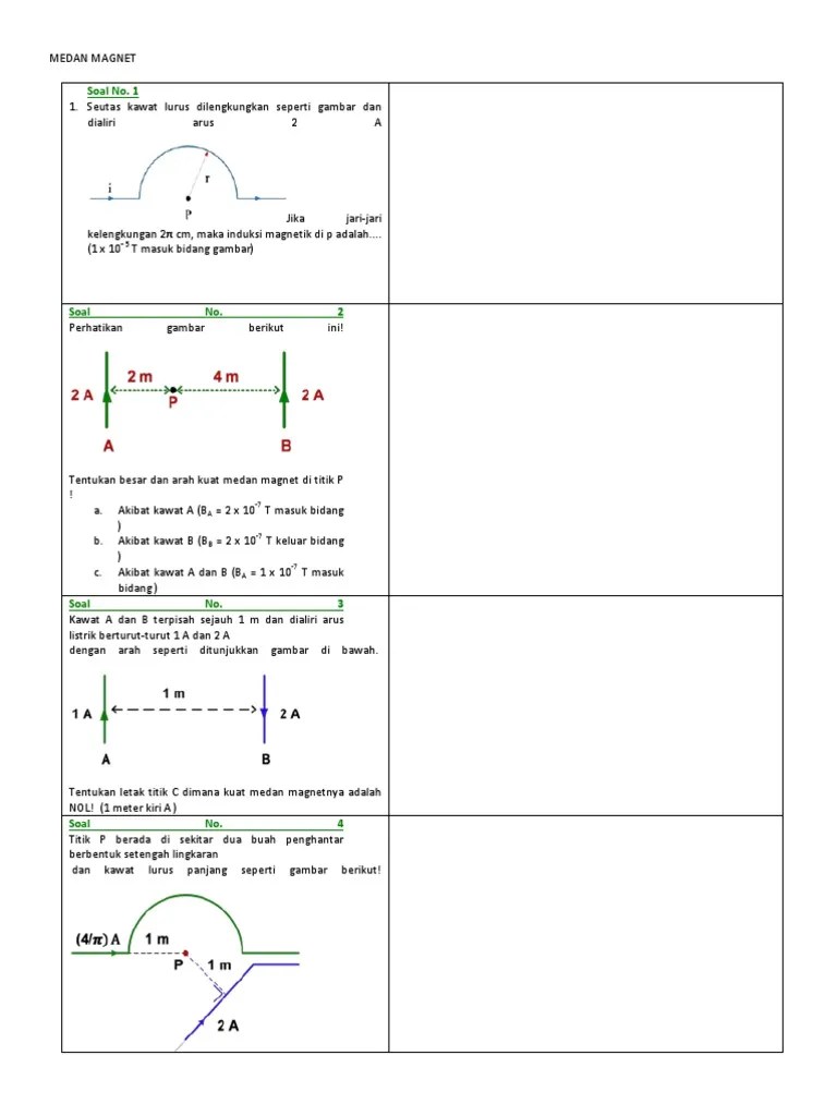 Contoh soal medan magnet dan pembahasan soal no.1 induksi magnetik di titik p yang berjarak 2 cm dari kawat lurus .
